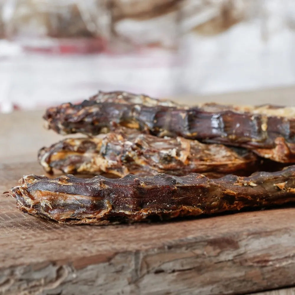 Mit den naturrein getrockneten Entenhälsen aus unserem Barf Shop bieten Sie Ihrer Fellnase einen besonders schmackhaften Kauspaß. Und das Beste: Durch die Zähigkeit der Entenhälse profitier Ihr Tier gleichzeitig noch von einem Zahnreinigungseffekt. Eine super Belohnung für Hunde und Katzen.