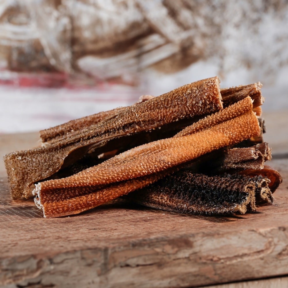 Der getrocknete Lammpansen aus unserem Barf Shop ist ein toller Kauspaß, der auch eher sensiblen Hunden eine große Freude bereitet. Durch seine Zähigkeit unterstützt der getrocknete Lammpansen die Zahnreinigung Ihres Vierbeiners. Eine gesunde Knabberei!
