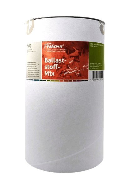 Den Ballastoff-Mix gleichmäßig unter das Futter mischen und mit etwas Wasser oder Brühe anrühren. Die Tagesmenge auf die Anzahl der Mahlzeiten aufteilen. Mit kleinerer Menge beginnen und langsam steigern. Die Gabe von Ballaststoffen kann das Kotvolumen erhöhen.
