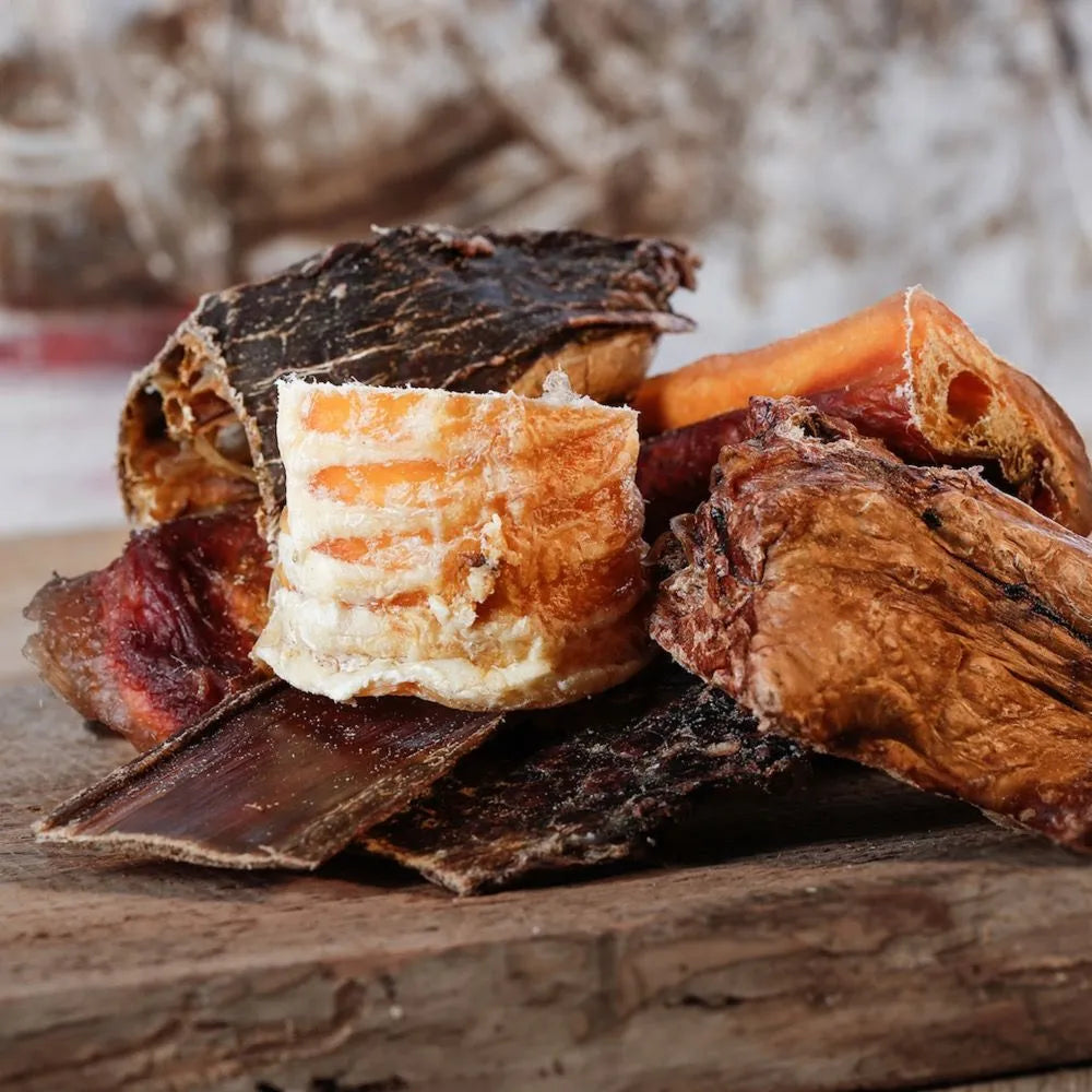 Der Rinder-Mix aus unserem Barf-Shop ist ein toller Naturkauartikel für Ihren Hund. Die Mischung aus Rindfleisch (Dörrfleisch), Rinderlunge, Rinderstrossen, Rinderkopfhaut und Rindernackensehnenstücke ist immer eine schmackhafte Belohnung für zwischendurch. Wenn Sie das nächste Mal Barf kaufen und einen Naturkauartikel mit Abwechslung suchen, probieren sie es unbedingt mal mit unserem Rindermix.